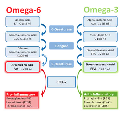 The closer we are to a 1:1 ratio of Omega 3 to Omega 6, the less inflammation we will have, which means we will also have less pain and less chronic disease symptoms.