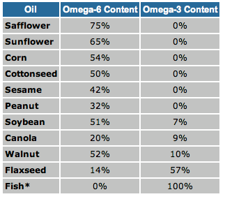 See the chart below for an idea of how much Omega 6 vs. Omega 3 you’re getting in your diet.