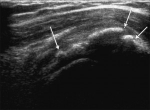 - recherche d’un conflit ( un frottement) lié à la calcification par des manoeuvres dynamiques ( échographie pendant que le bras bouge) .